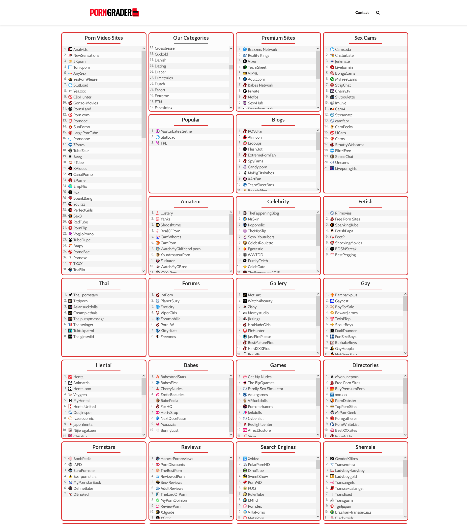 Devinez quoi ? PornGrader classe le porno ! Ce site a pour vocation de compiler des listes complètes de pornographie pour vous aider à mieux naviguer dans le monde du pervers. Il existe 138 catégories stupéfiantes, dont Tickle, Torrent, WAM, Female Masturbation et bien d'autres choses sous-estimées.