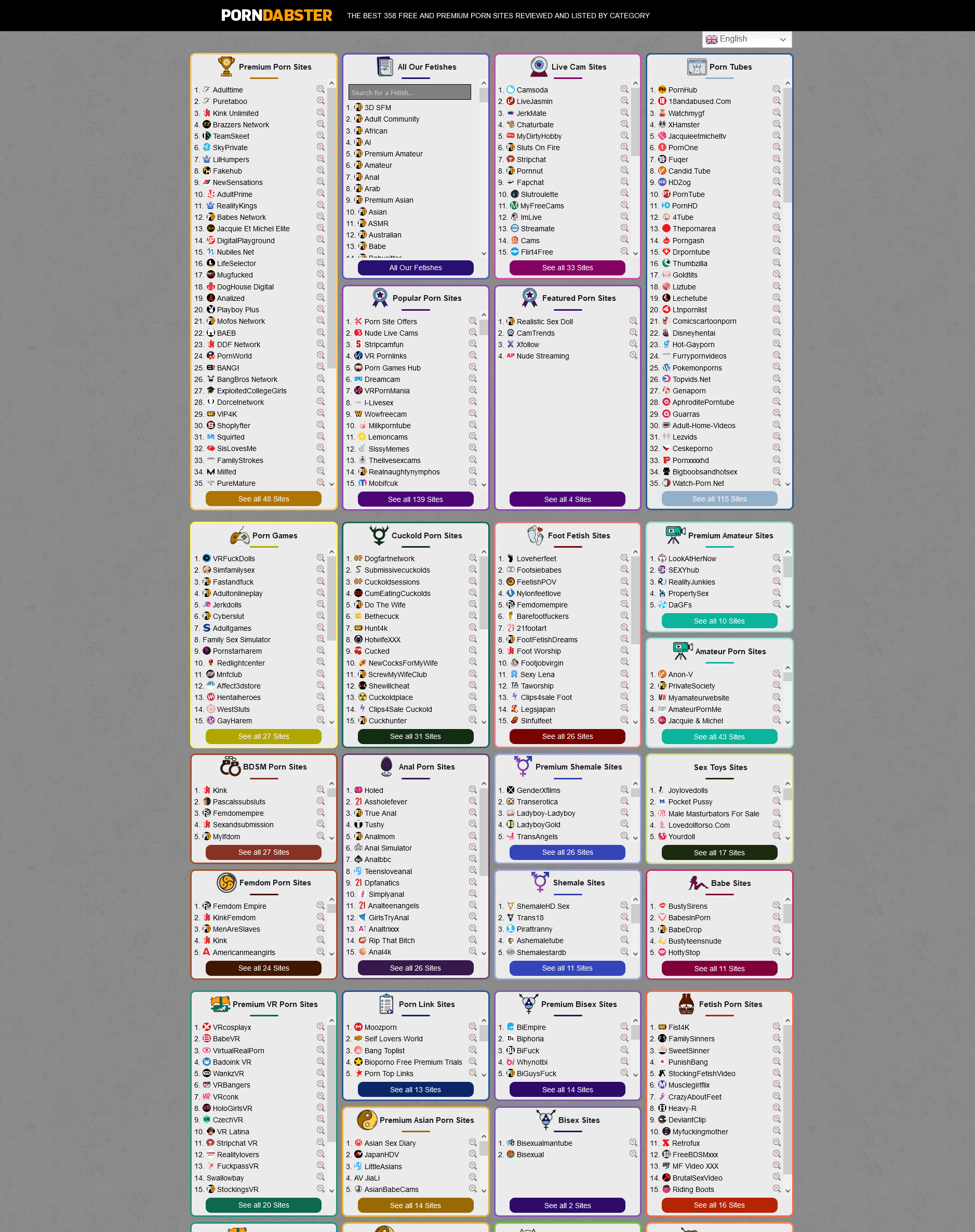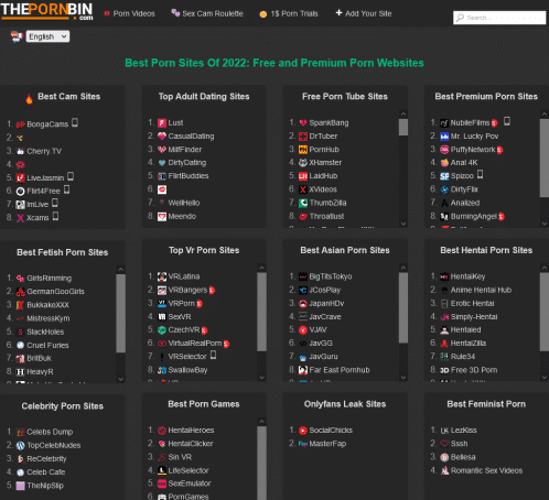Même si nous avons tendance à penser que Top Porn Guide est l'une des meilleures listes de porno, nous avons une concurrence féroce. Voici quelques-uns des autres meilleurs sites de listes de porno aujourd'hui.